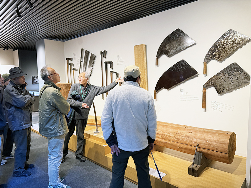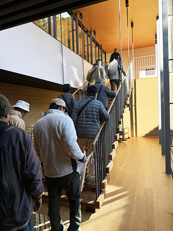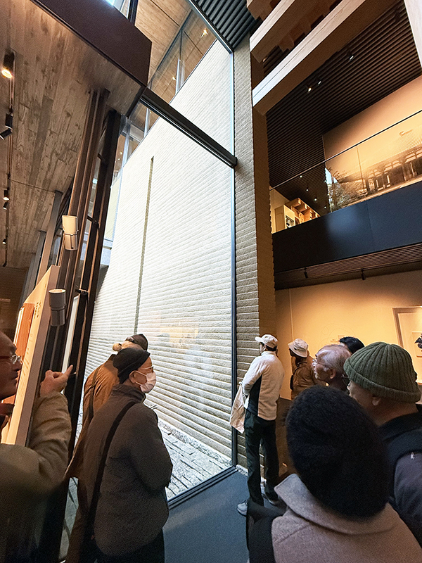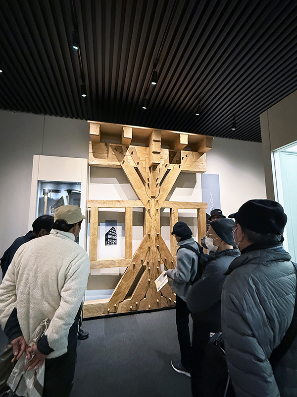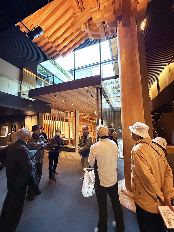 初冬ながらも天気に恵まれ、明るい日差しの中を歩く見学日和となりました。私にとって初めて訪れる竹中大工道具館は、紅葉の樹々に囲まれた一見平屋建ての落ち着いた建物でした。