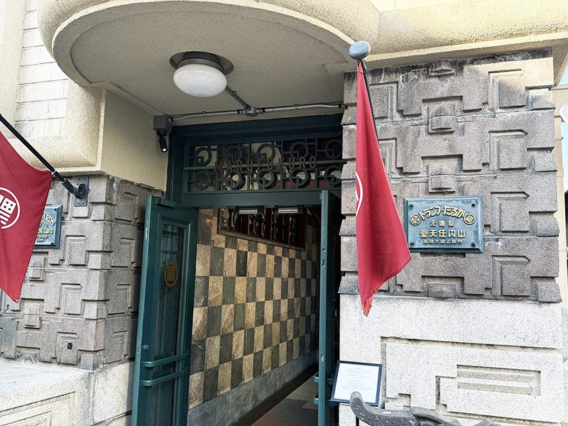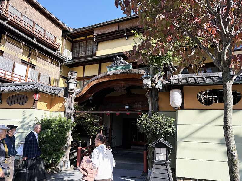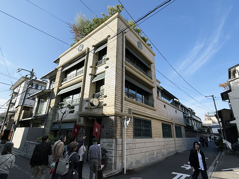 五条通の南方、高瀬川沿いに旧五条楽園があります。江戸後期、明治期には京都最大の遊郭として繁栄したそうです。現在も妓楼(ぎろう)建築が残るレトロな街です。途中、洋風の大きくて立派な建物があります。任天堂の旧本社で現在はホテル「丸福樓」です。入り口には、山内任天堂のプレートがあります。