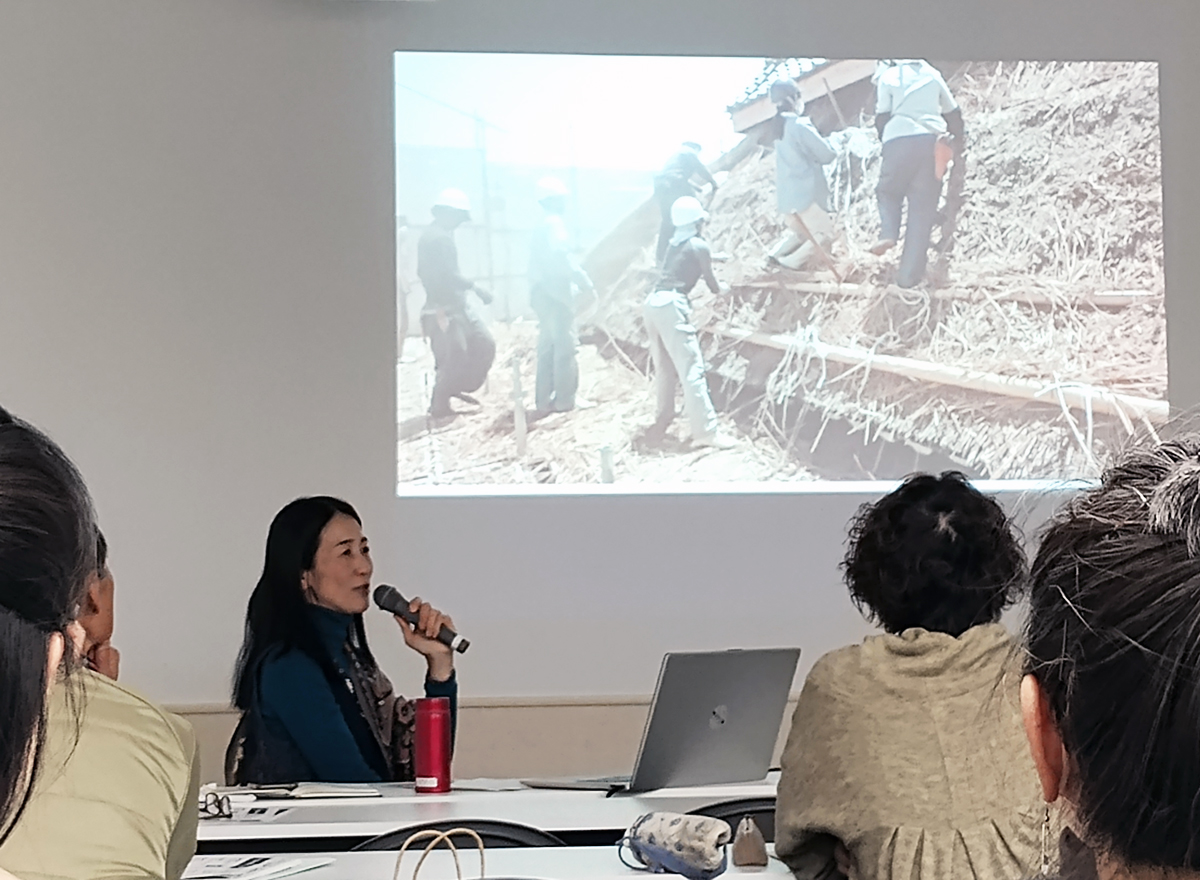 140年程前に先祖が建てた茅葺き古民家を改修し暮らされている綱本琴さんにお話を伺いました。今回のお話は古民家の改修過程の記録だけではなく、改修して住むと決断し着工が始まるまでの記録、そして完成・引越しされてからの暮らしの記録も含めて時系列に写真、挿し絵、図面も見ながらお話いただきました。心に残るところが数多くありました。