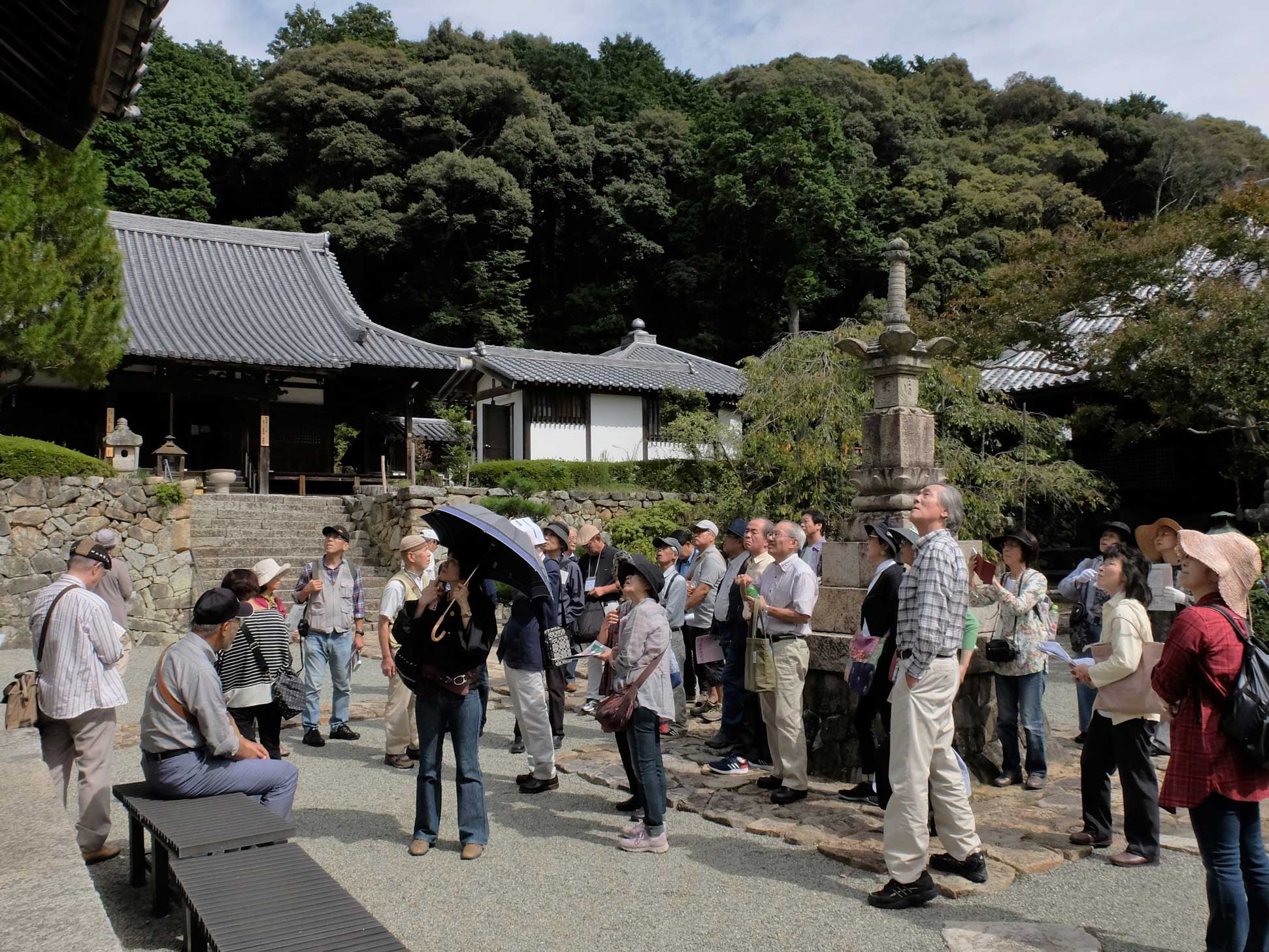 「雲雀丘花屋敷駅」に午前10時集合。約40名(今回は単会参加者が多く)の参加者でしたが予定通り10時6分発のバスに乗れて満願寺に向かいました。予想通りの登坂の連続で住んでいる人は大変だなと思っているうちに満願寺に到着しました。創建は奈良時代らしく「新西国霊場第十三番」です。まず山門が変わっていて他では見たことがないような2棟の山門でした。